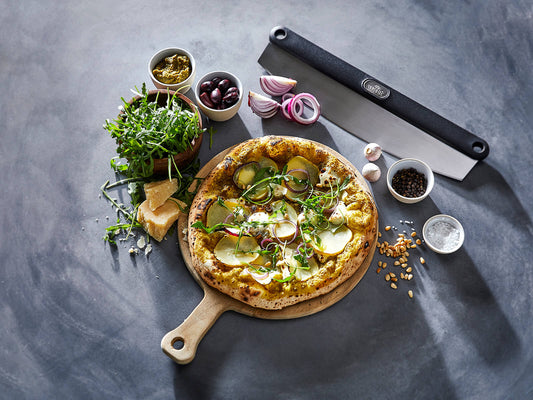 Elevate your pizza-making game with our premium pizza peel, turning peel, roller pin, dough scraper, and pizza table. Keep your oven protected and clean with our durable cover and handy brush. Stay stylish and protected as the truepizzaiolo you are with a sleek pizza apron, and much more.